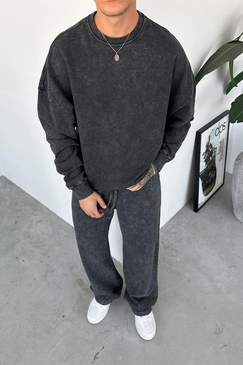 Antrasit Basic Yıkamalı Oversize Sweat