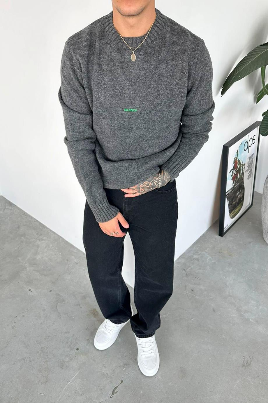 Antrasit Sılence Nakış Soft Relaxed Kazak