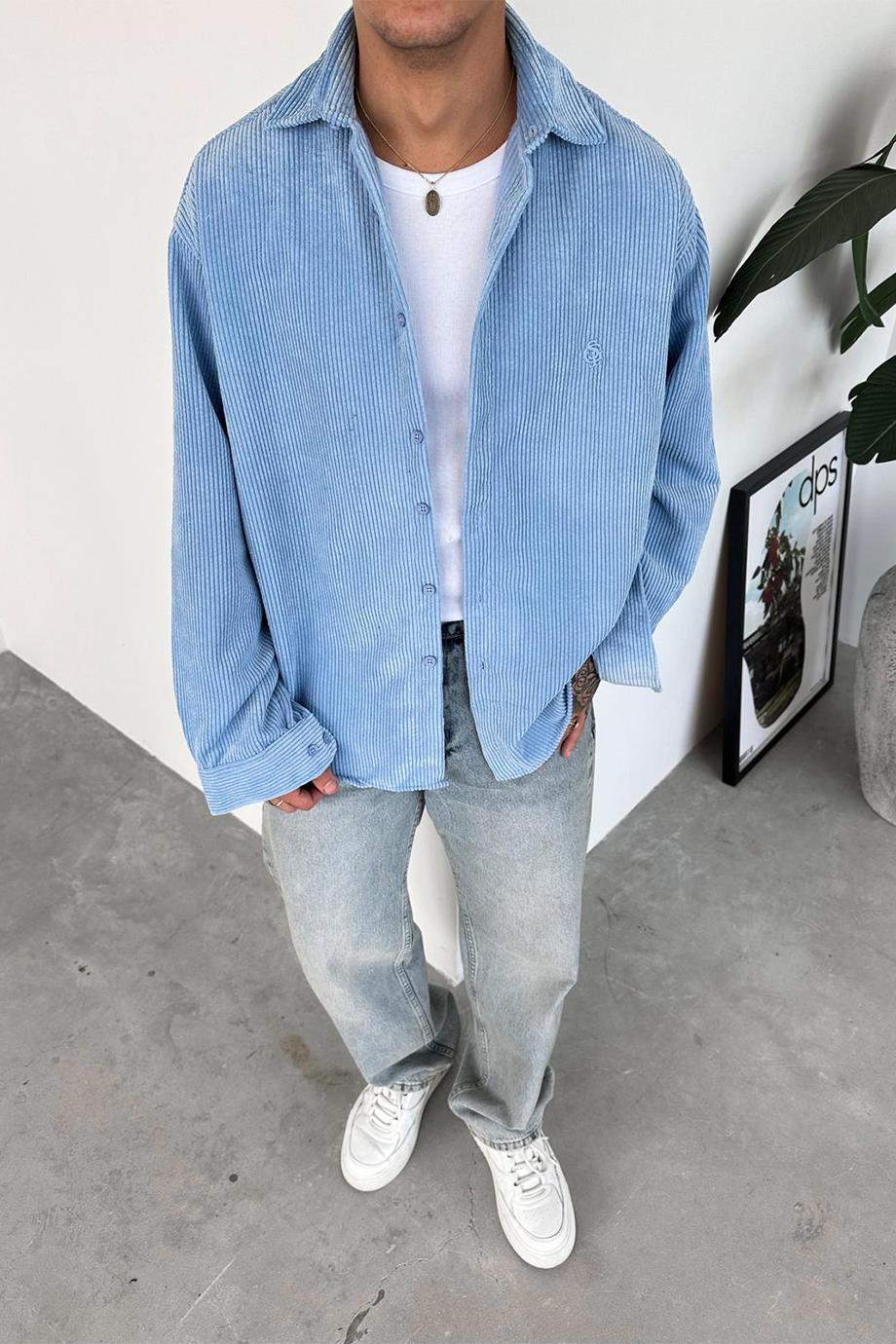 Bebe Mavi Fitilli Kadife Relaxed Gömlek