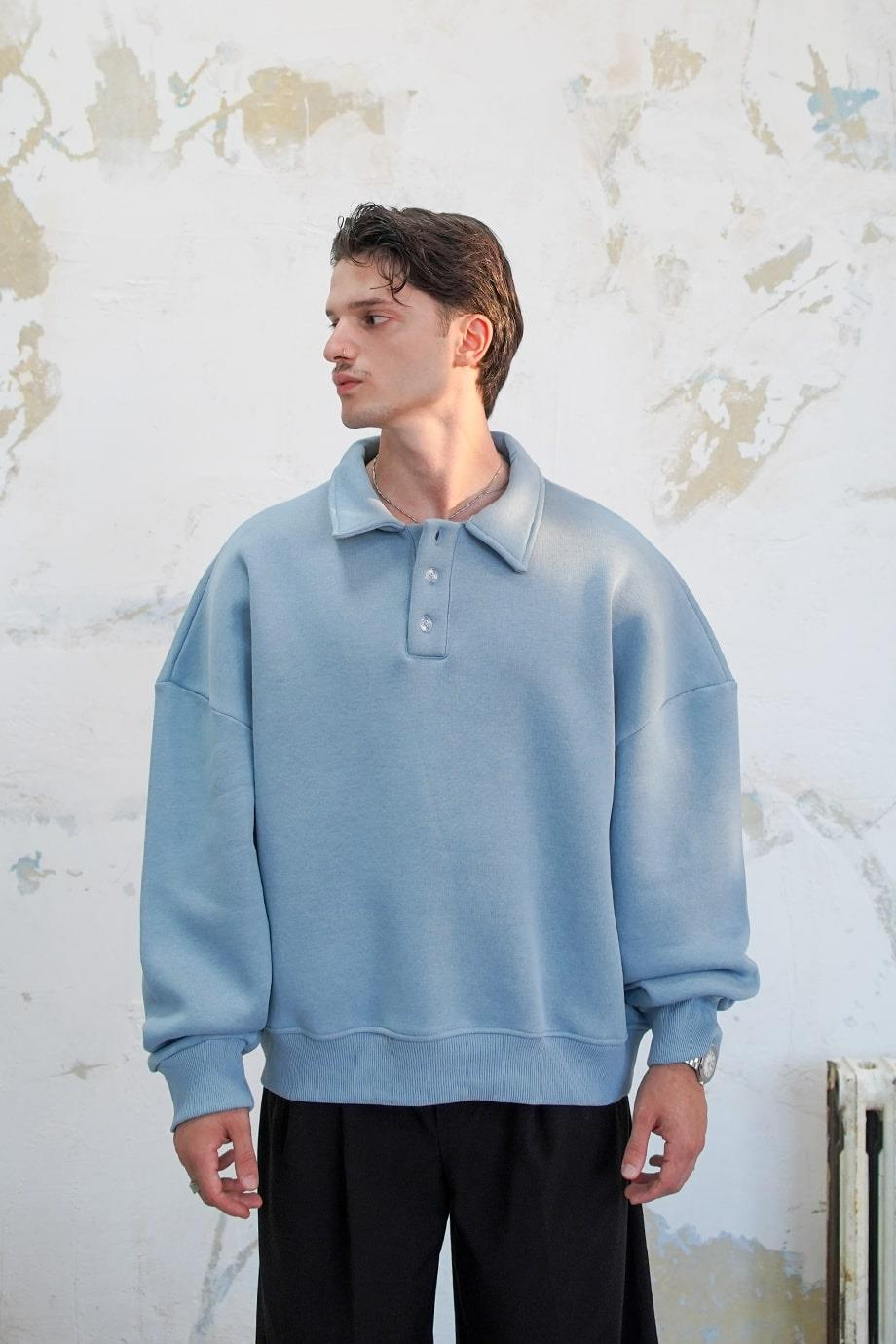 Bebe Mavisi Cozy Basic Oversize Polo Yaka Sweatshirt (HF006-K)