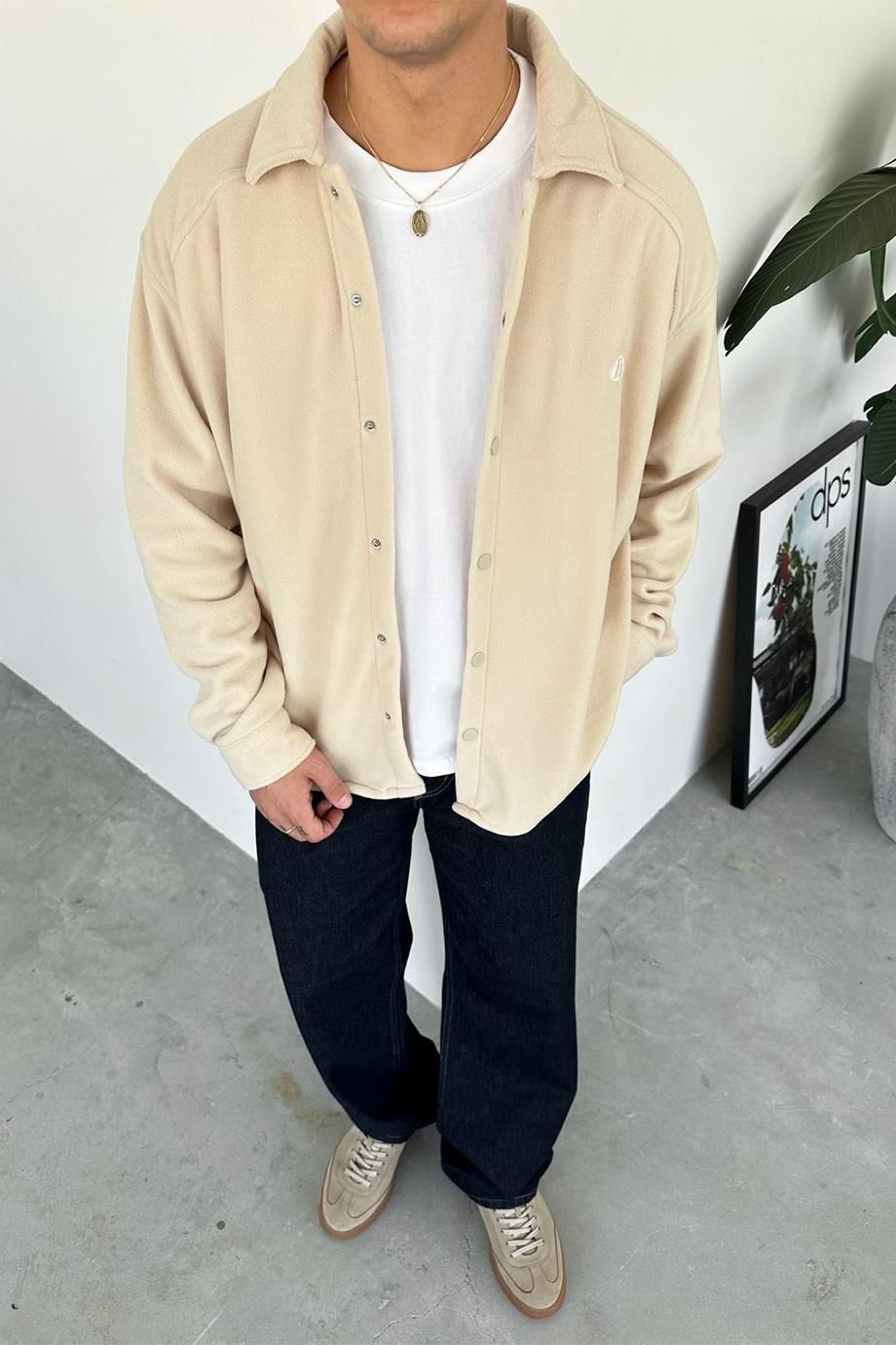 Bej G Nakışlı Oversize Polar Gömlek (HF0091-GO-K)