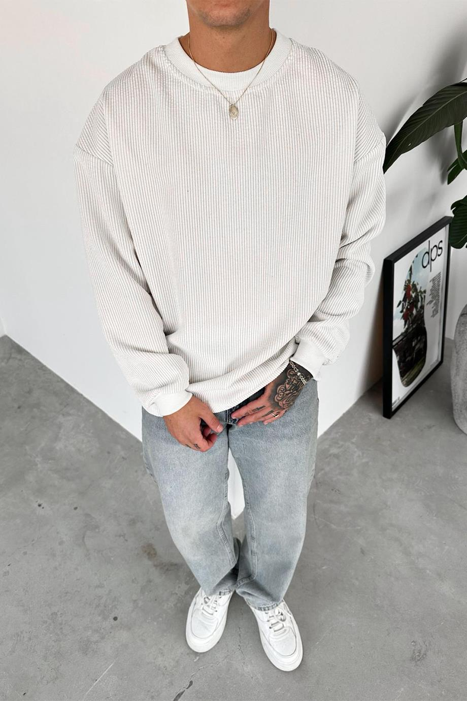 Beyaz Fitilli Kadife Basic Sweat (HF0095-GO-K)