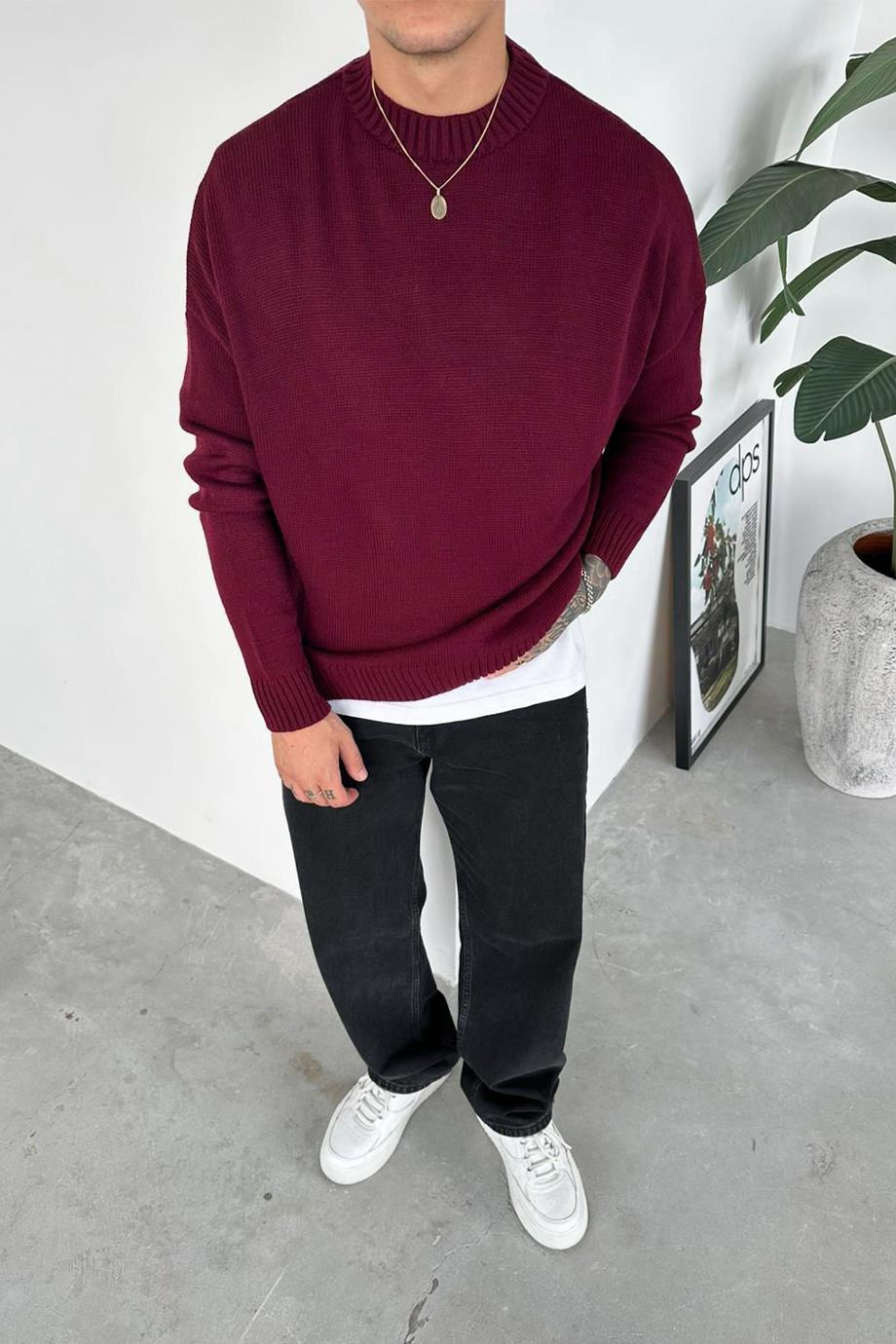 Bordo Basic Bisiklet Yaka Triko Kazak