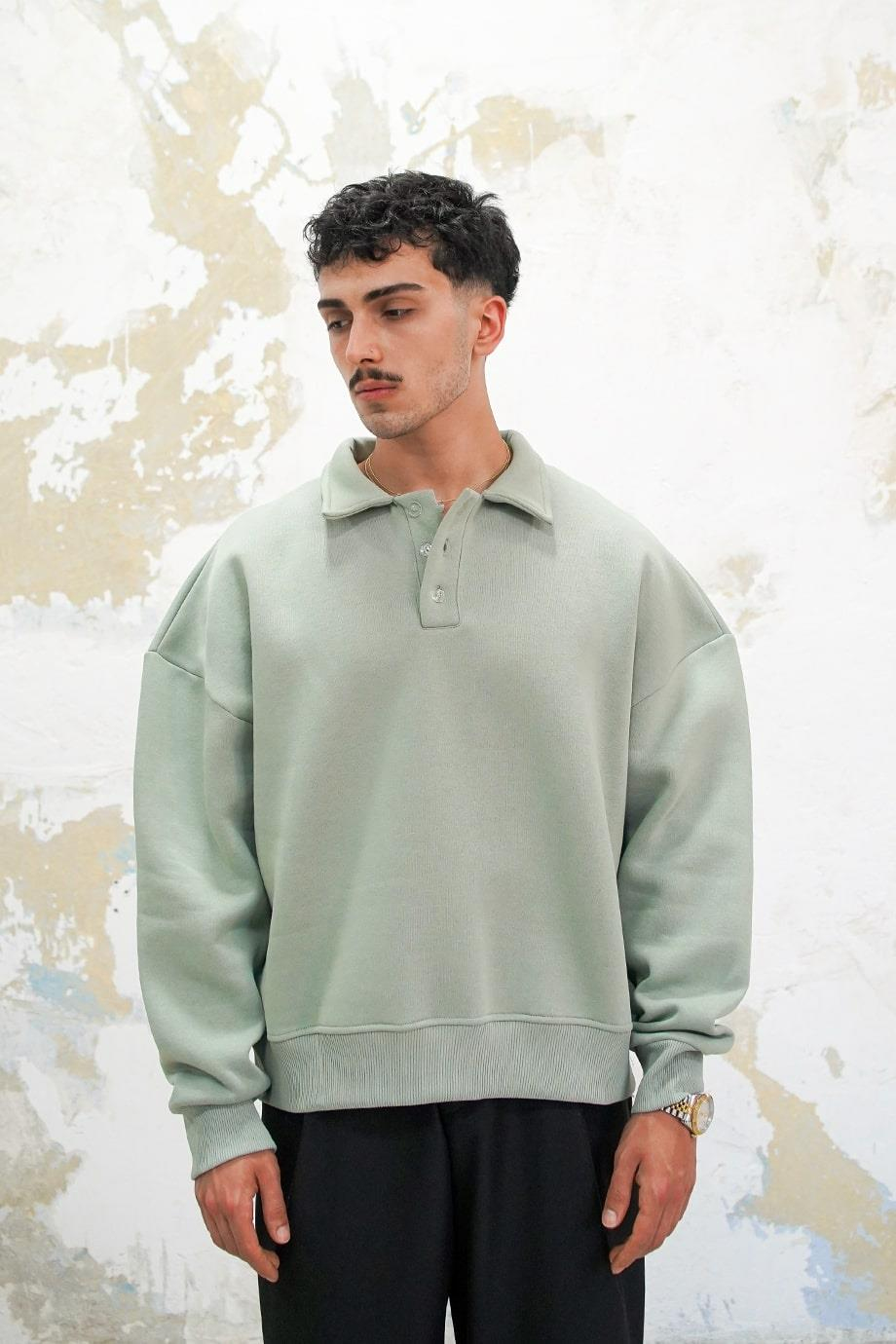 Buz Yeşil Cozy Basic Oversize Polo Yaka Sweatshirt (HF006-K)