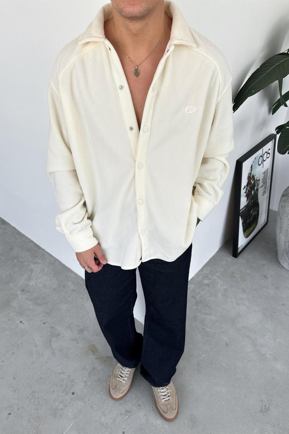 Ekru G Nakışlı Oversize Polar Gömlek (HF0091-GO-K)