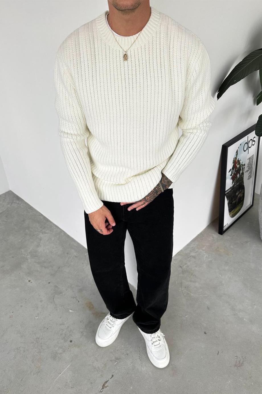 Ekru Örme Desen Relaxed Triko Kazak (HF0045-MH-K)