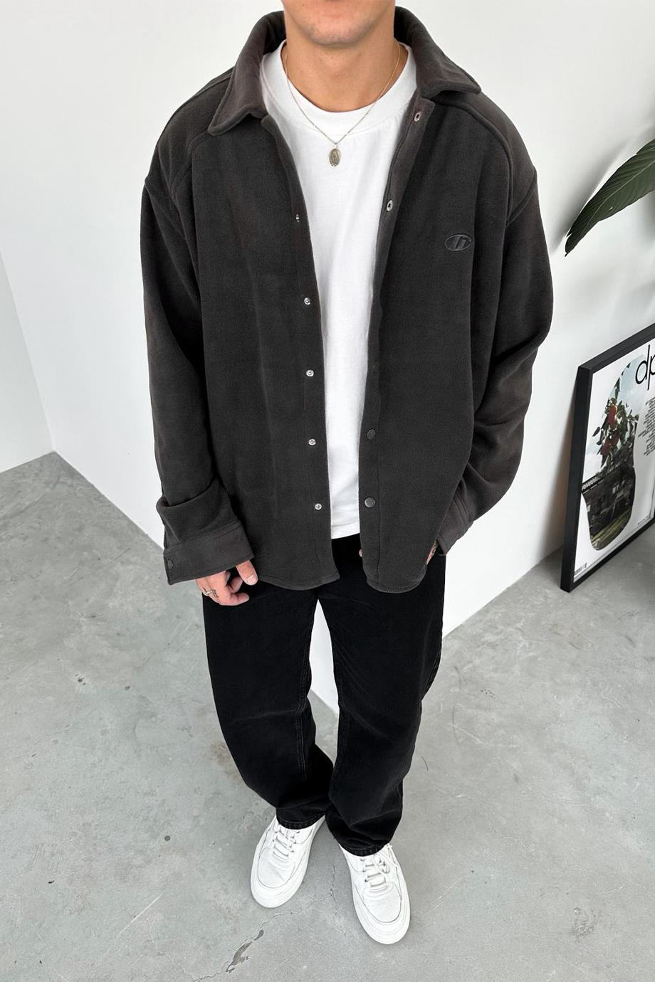 Füme G Nakışlı Oversize Polar Gömlek (HF0091-GO-K)
