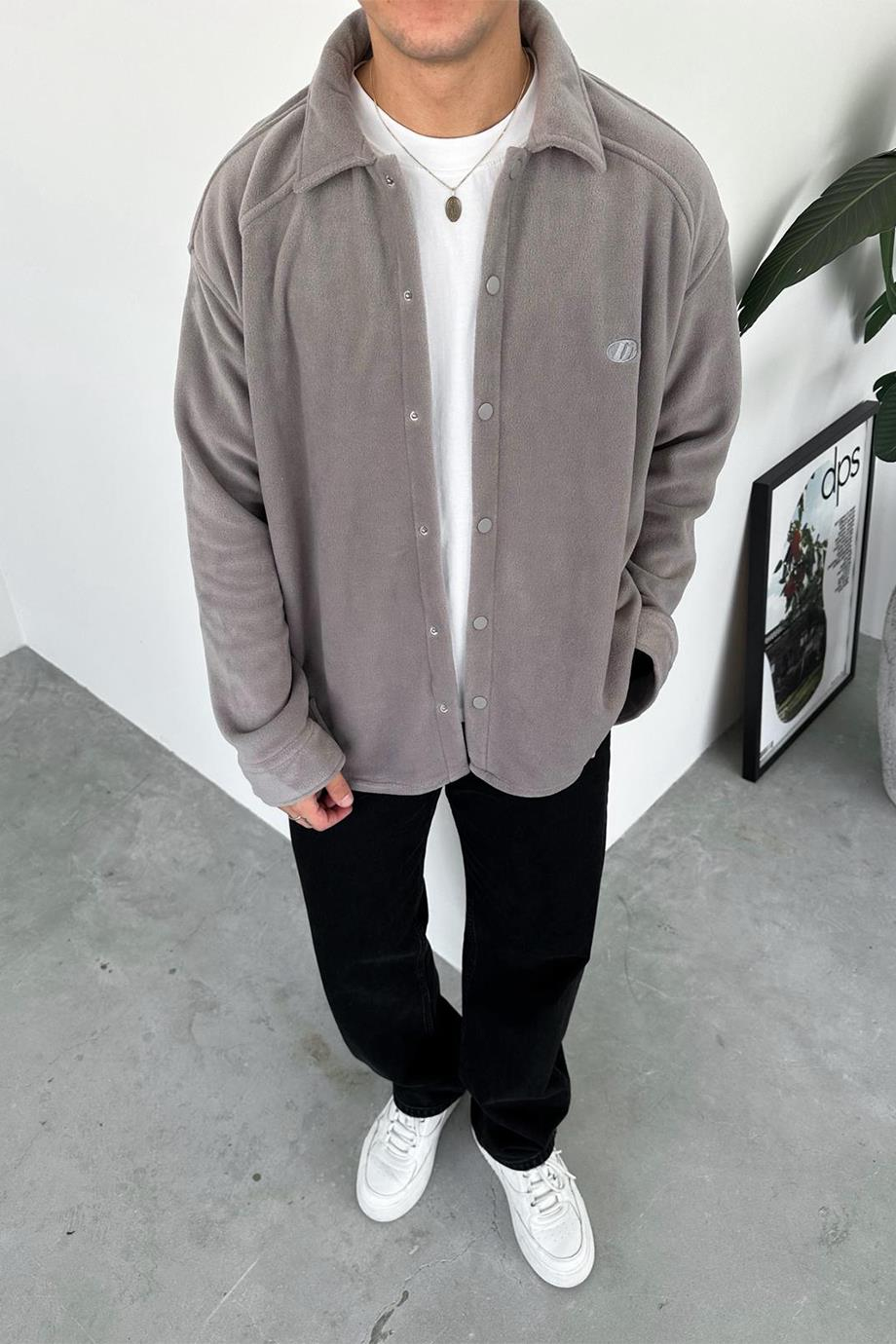 Gri G Nakışlı Oversize Polar Gömlek (HF0091-GO-K)