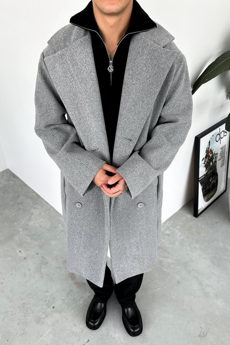 Gri Premium Basic Kemerli Kaşe Kaban (HF0085-GO-K)