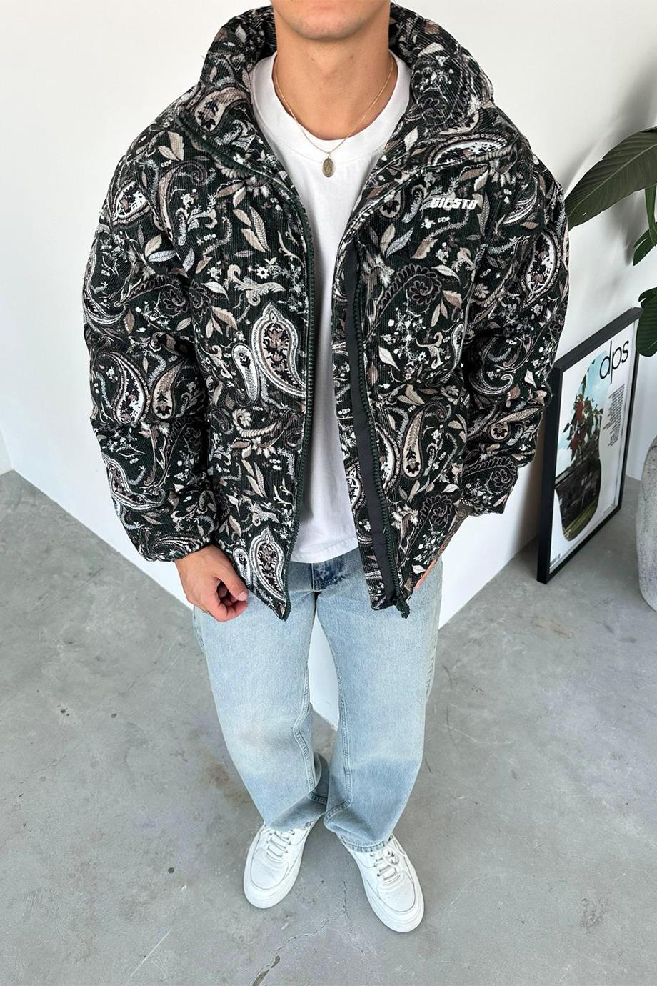 Haki Desenli Kadife Şişme Mont (HF0094-GO-K)