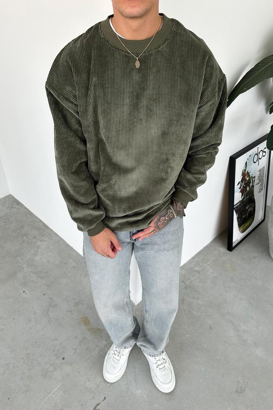 Haki Fitilli Kadife Basic Sweat (HF0095-GO-K)