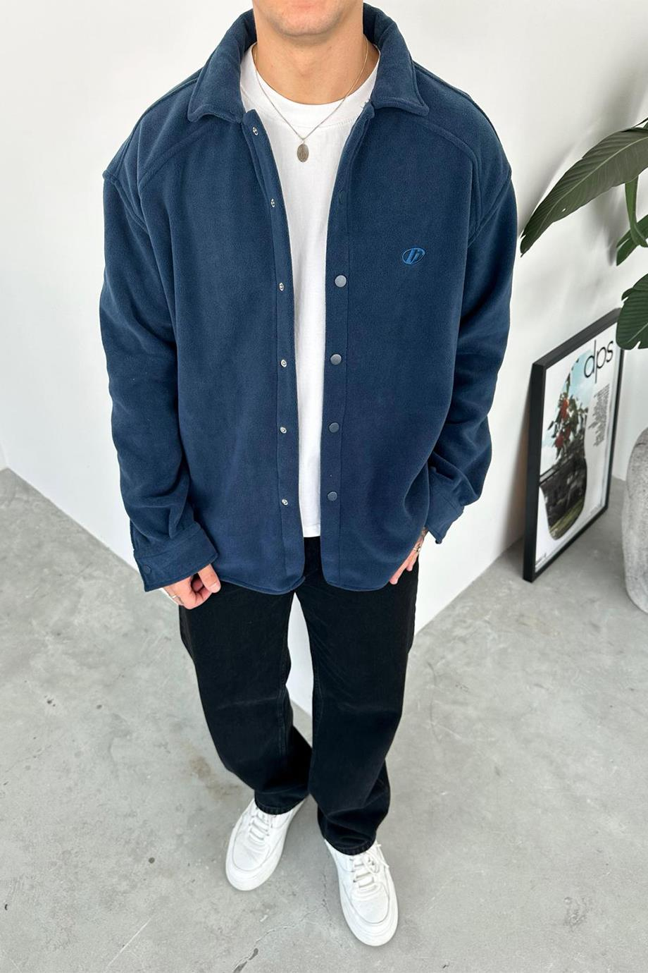İndigo G Nakışlı Oversize Polar Gömlek (HF0091-GO-K)