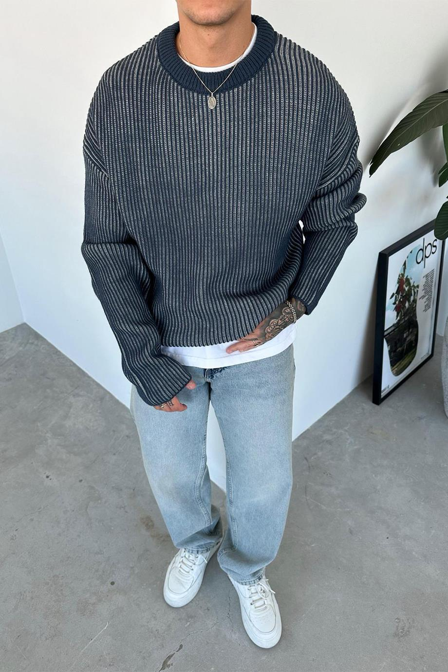 Vizon Soft Yıkamalı Relaxed Triko Kazak İndigo Soft Yıkamalı Relaxed Triko Kazak Antrasit Soft Yıkamalı Relaxed Triko Kazak
