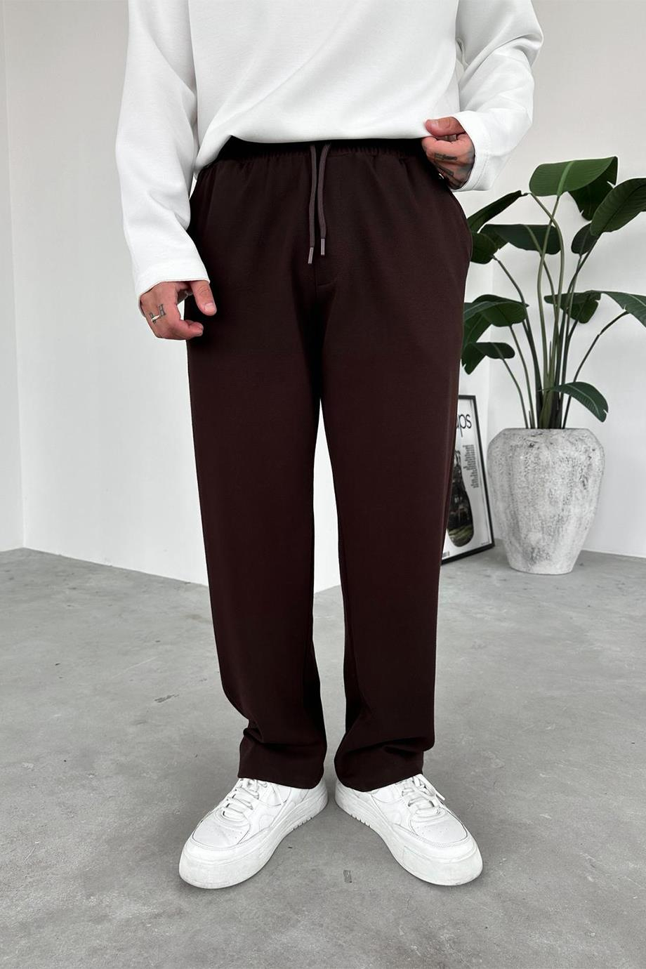 Kahverengi Beli Lastikli Gabardin Baggy Pantolon (HF0097-GO-K)