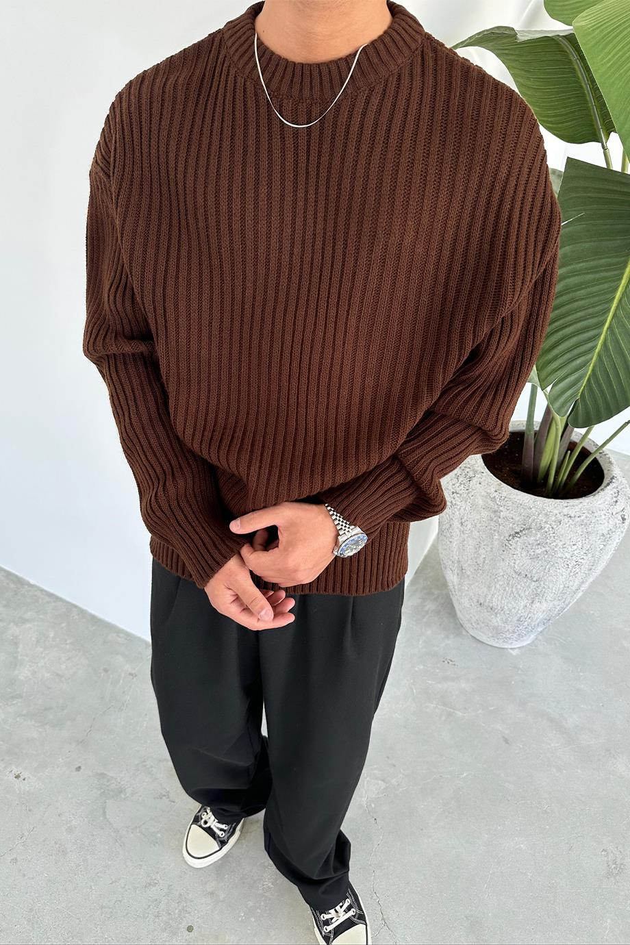 Kahverengi Bisiklet Yaka Fitilli Oversize Triko Kazak (HF0018-MH-K)