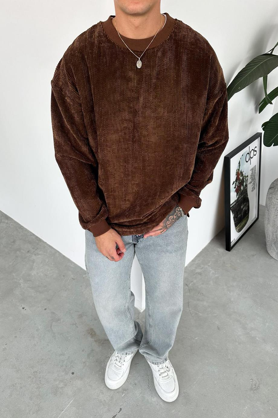 Kahverengi Fitilli Kadife Basic Sweat (HF0095-GO-K)