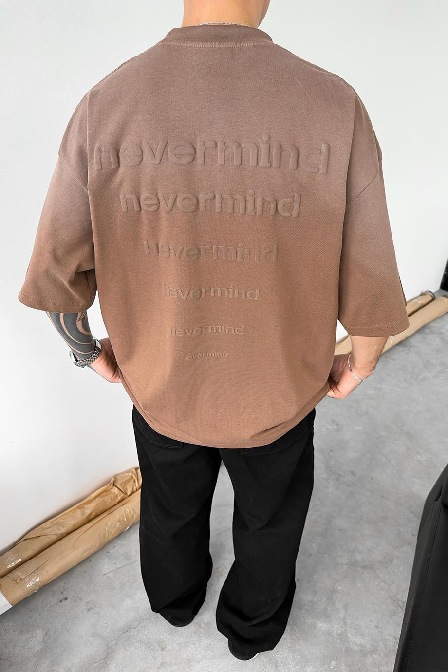 Kahverengi Nevermind Kabartma Baskılı Oversize Tişört (HF0026-BS-Y)