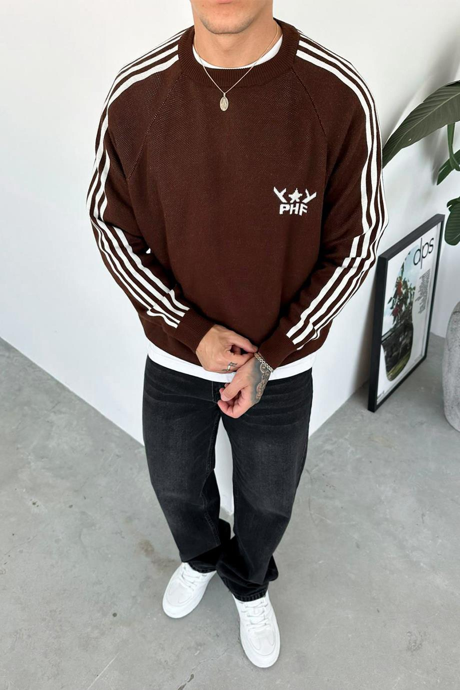 Kahverengi Şerit Detay Baskılı Oversize Sweat (HF001-PM-K)