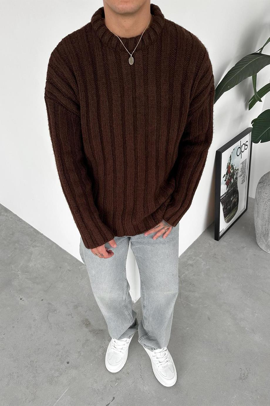 Kahverengi Soft Premium Örme Relaxed Triko Kazak