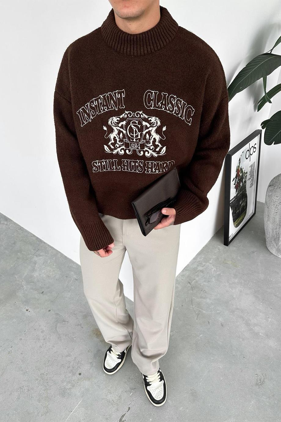 Kahverengi Still Hits İşlemeli Premium Kazak (HF0069-GO-K)