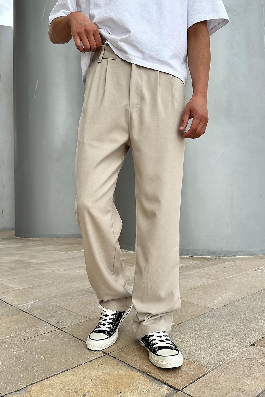 Krem Basic Kumaş A9 DL Baggy Pantolon (ZT296)