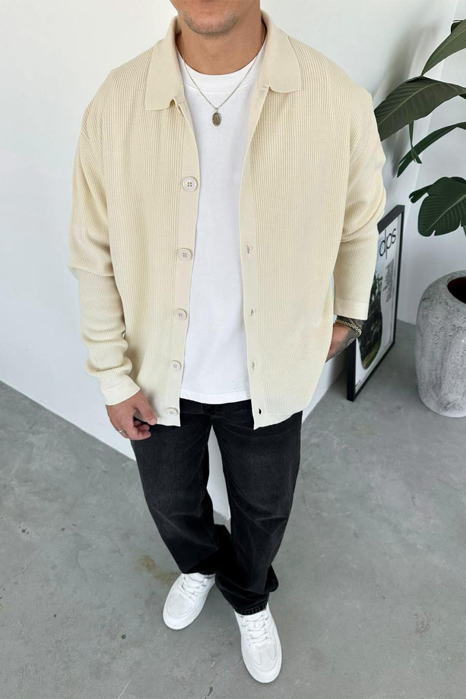 Krem Düğmeli Relaxed Triko Hırka (HF0020-PM-K)
