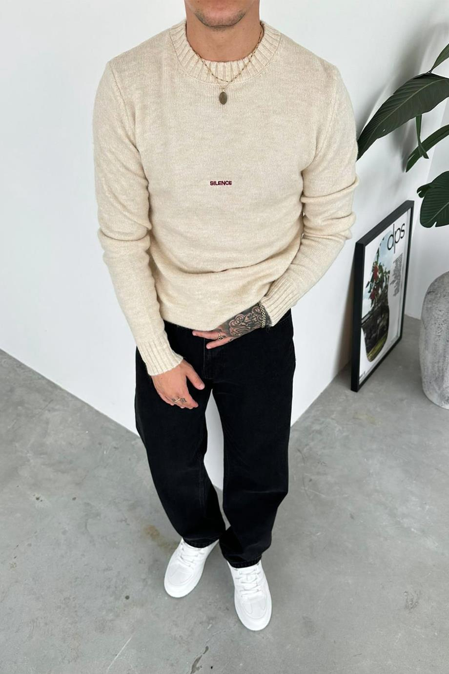Krem Sılence Nakış Soft Relaxed Kazak (HF0038-MH-K)