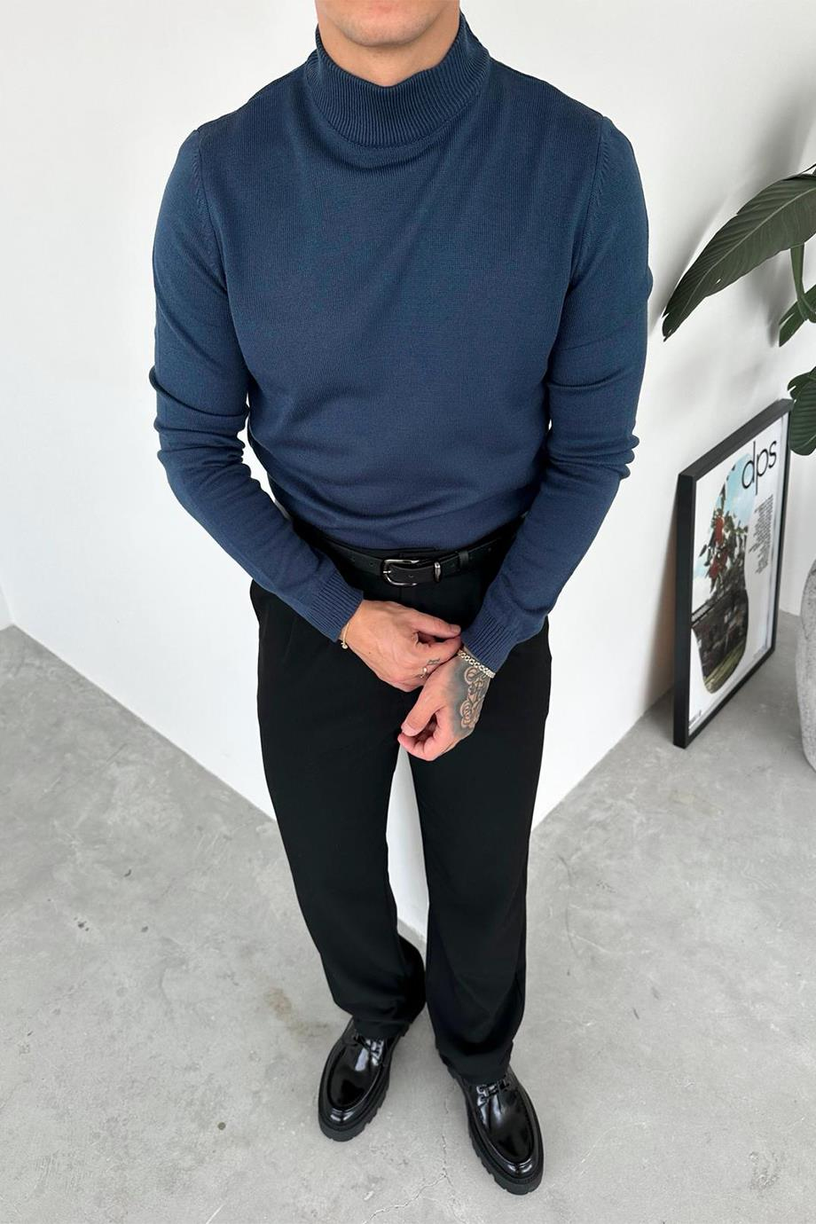 Lacivert Basic Boğazlı Relaxed Triko Kazak (HF0048-MH-K)