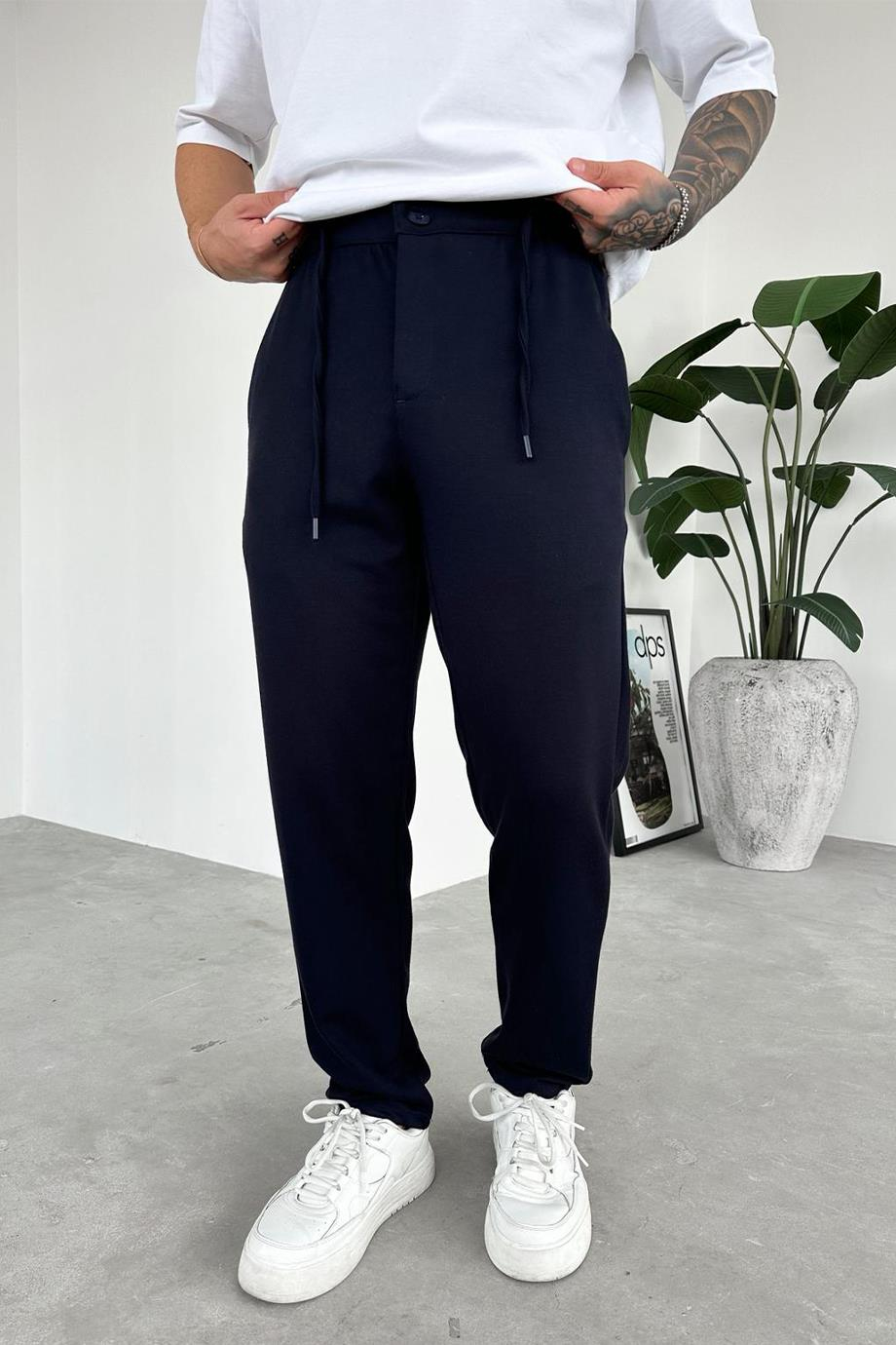 Lacivert Beli İp Detaylı Gabardin Regular Pantolon (HF0099-GO-K)