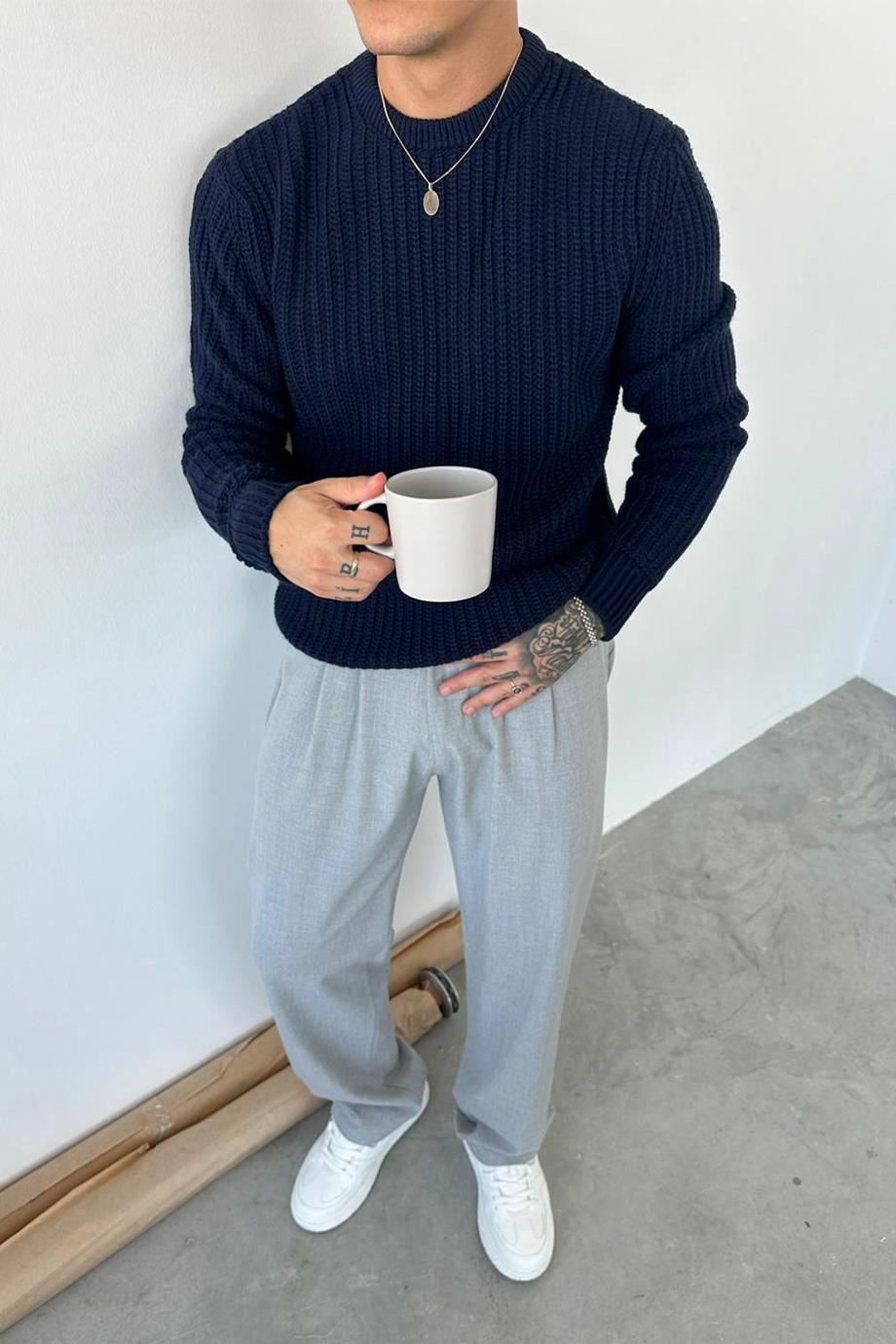 Lacivert Bisiklet Yaka Oversize Örgü Kazak