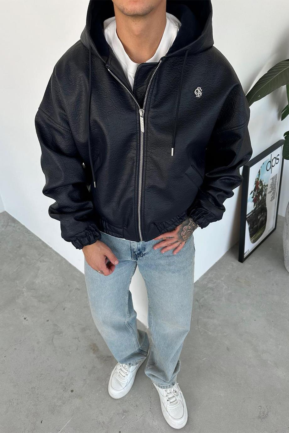 Lacivert İçi Polarlı Crop Kesim Premium Deri Mont Siyah İçi Polarlı Crop Kesim Premium Deri Mont