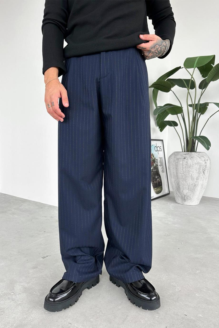 Lacivert Parfe Çizgili Beli Lastikli Premium Kumaş Pantolon (HF0082-GO-K)