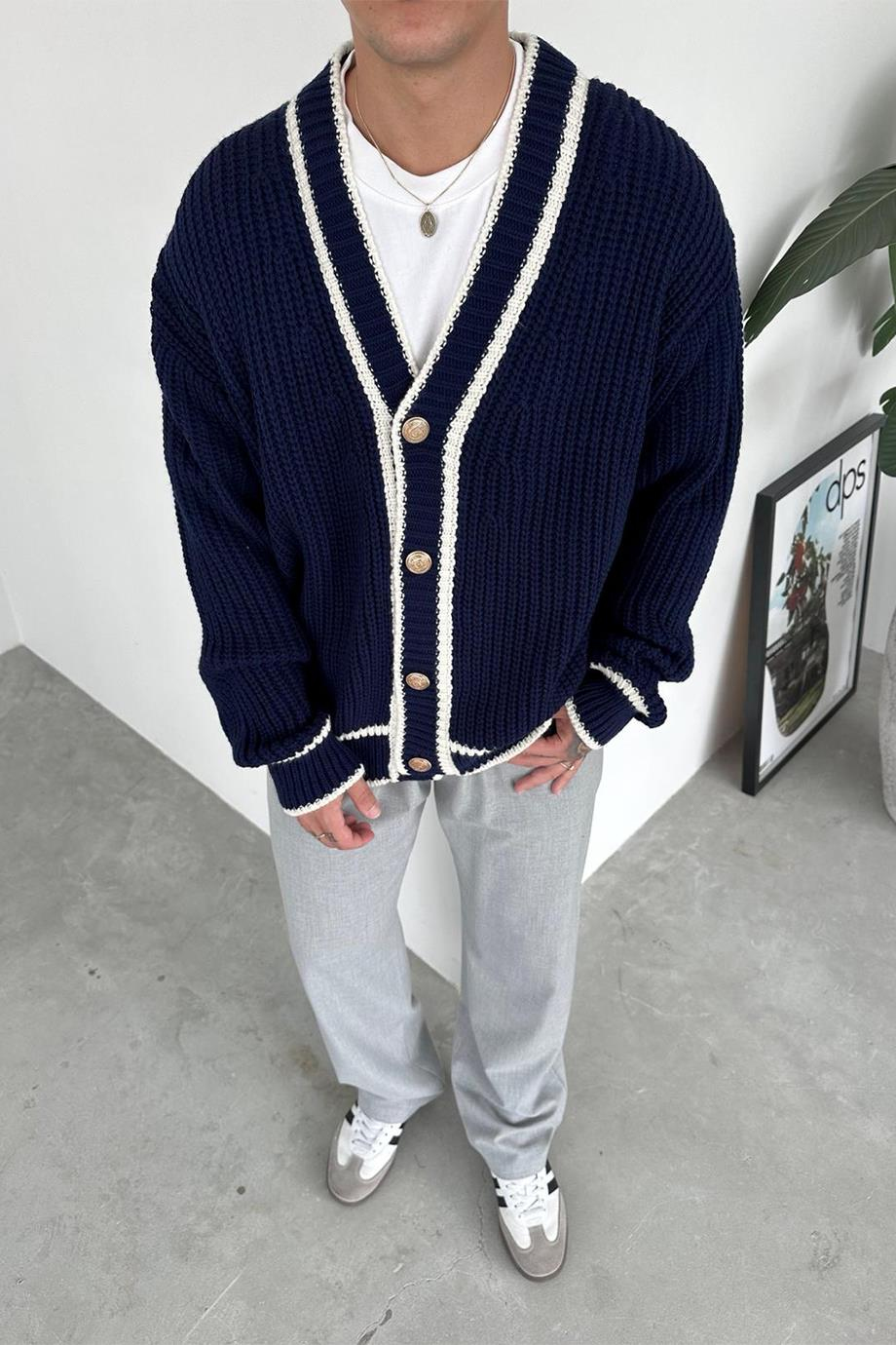 Lacivert Premium Tasarım Relaxed Örme Hırka (HF0068-GO-K)