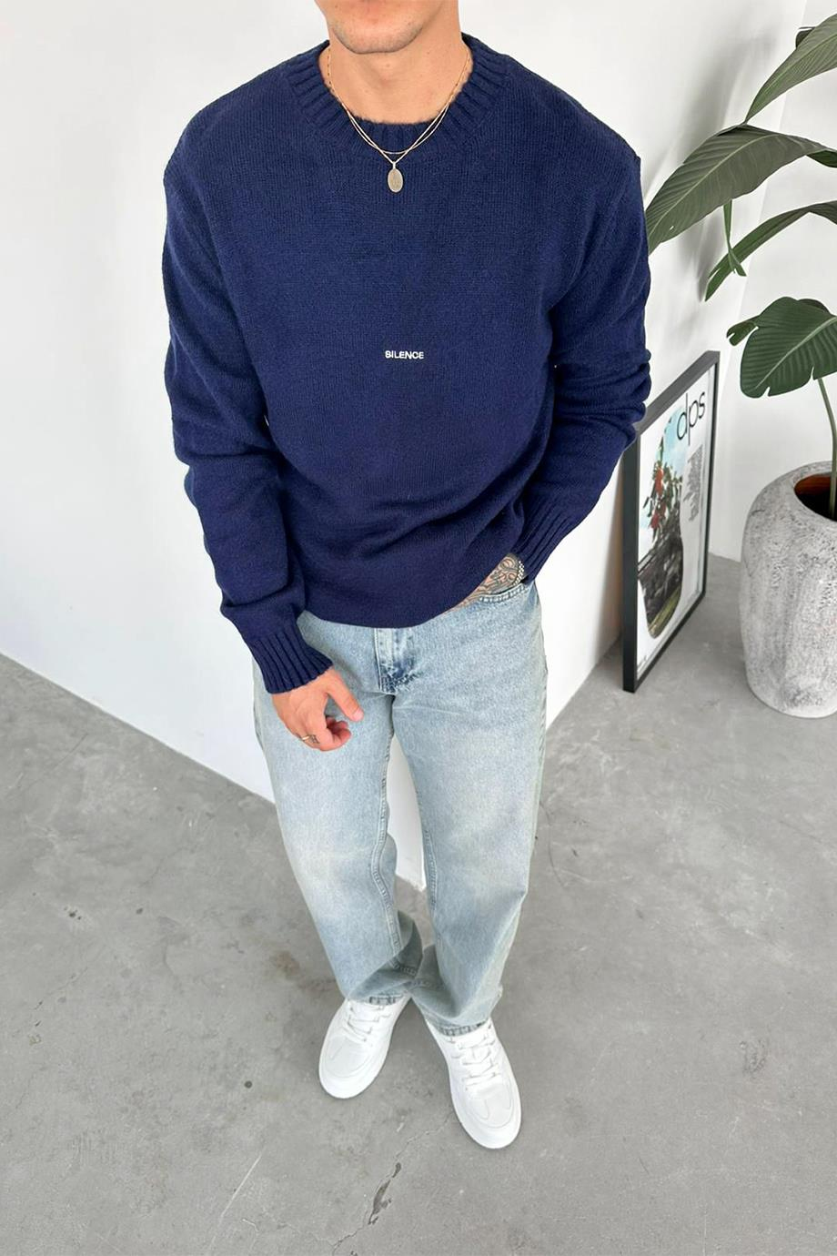 Lacivert Sılence Nakış Soft Relaxed Kazak