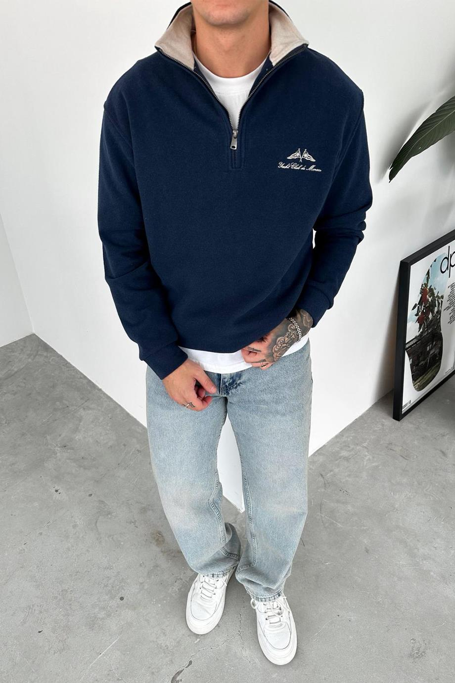 Lacivert Yacht Club Yarım Fermuar Relaxed Sweatshirt (HF0030-PM-K)