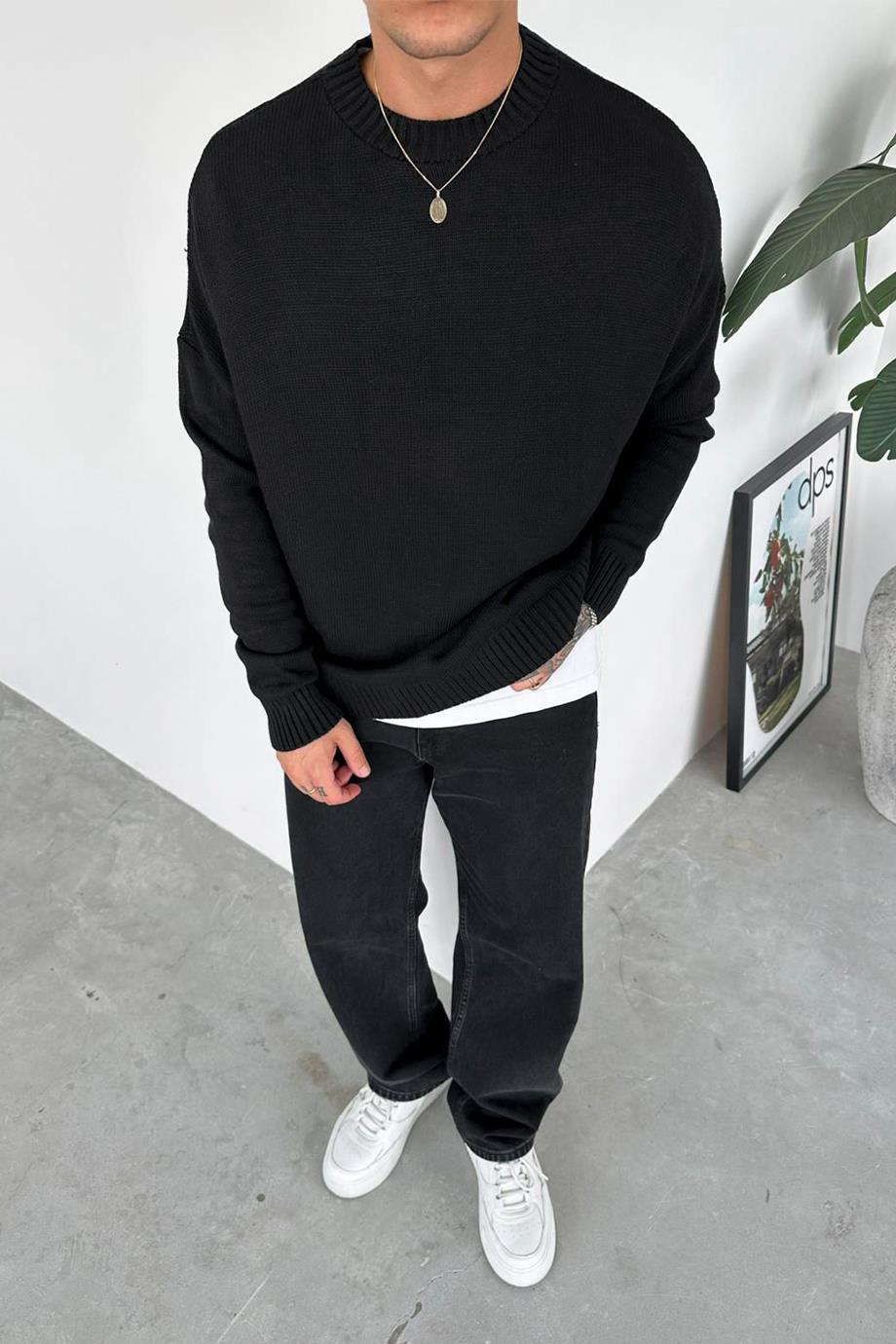 Siyah Basic Bisiklet Yaka Triko Kazak
