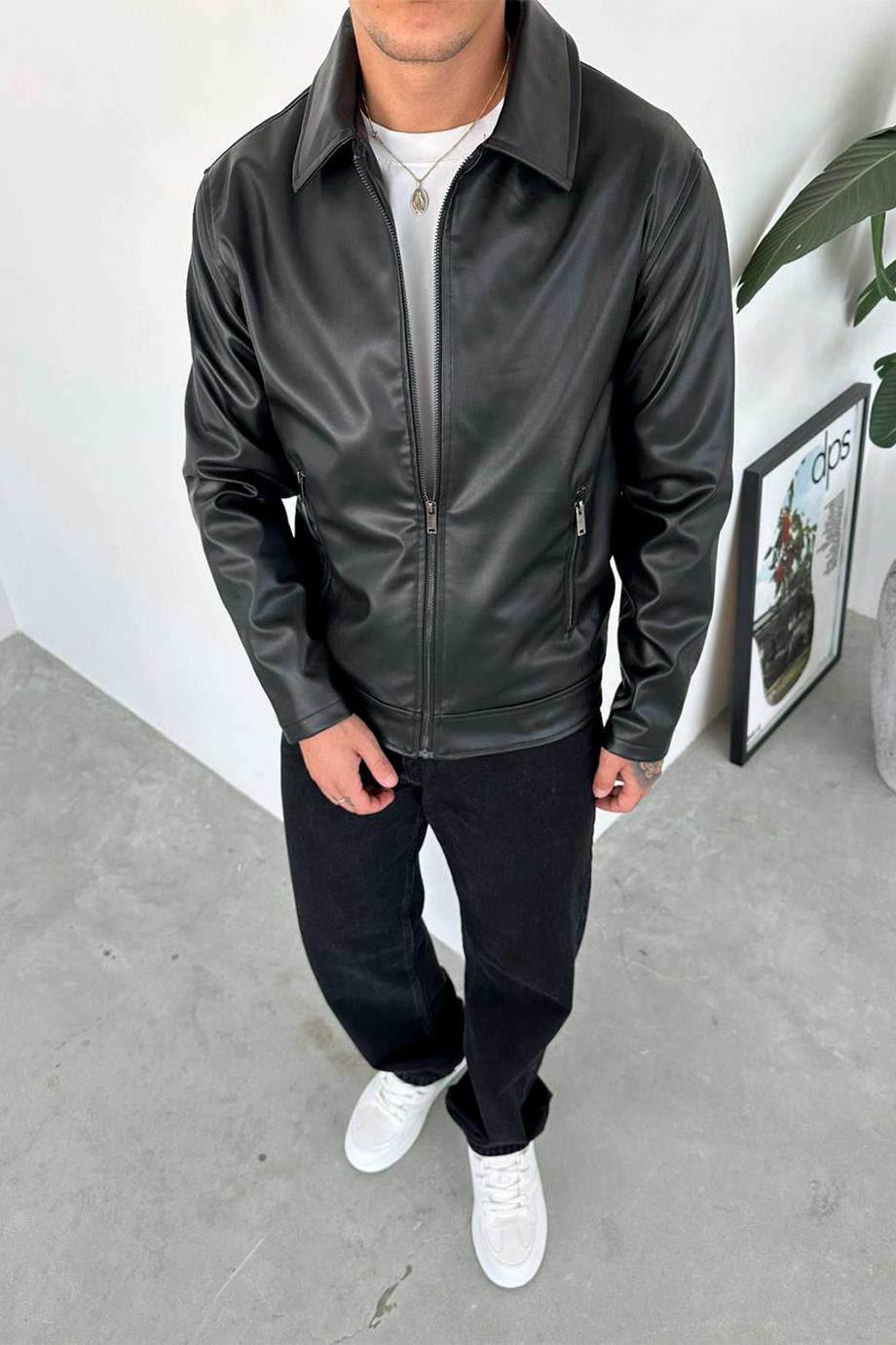 Siyah Fermuarlı Deri Ceket