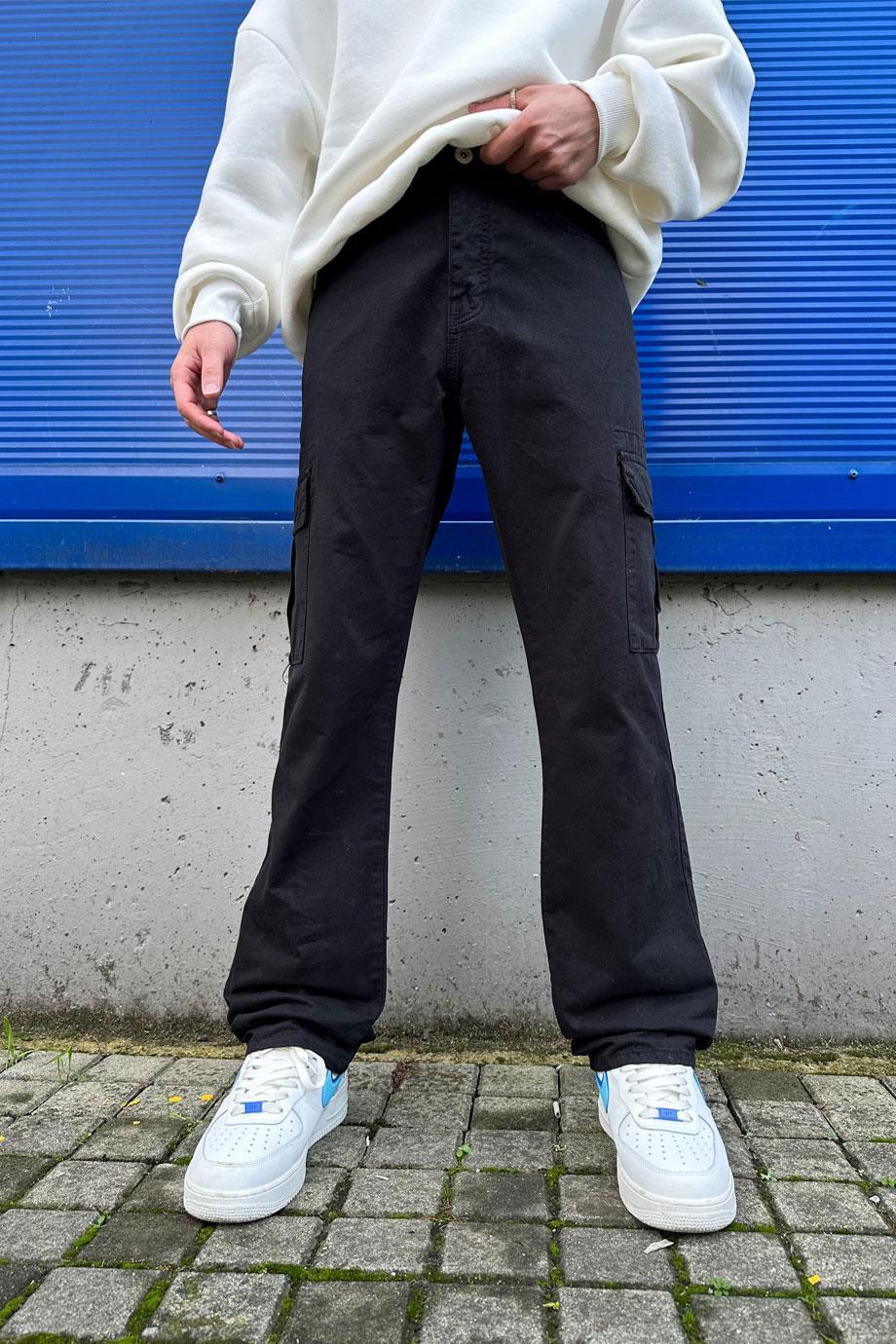 Siyah Kargo Cepli T1 GD Baggy Pantolon (HFK00206)