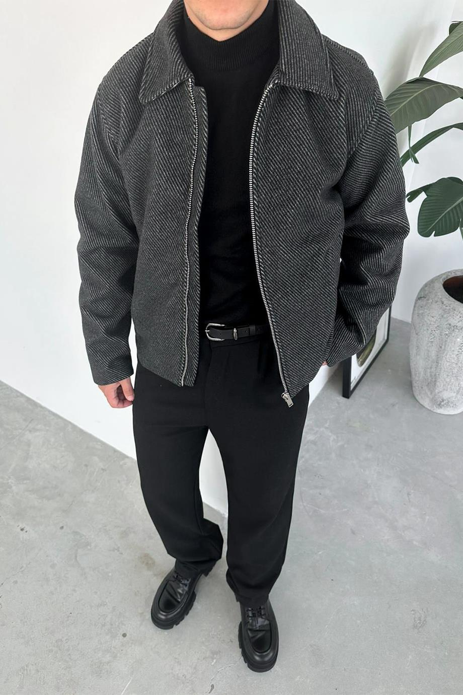 Siyah Premium Kaşe Kumaş Relaxed Ceket (HF0029-MH-K)