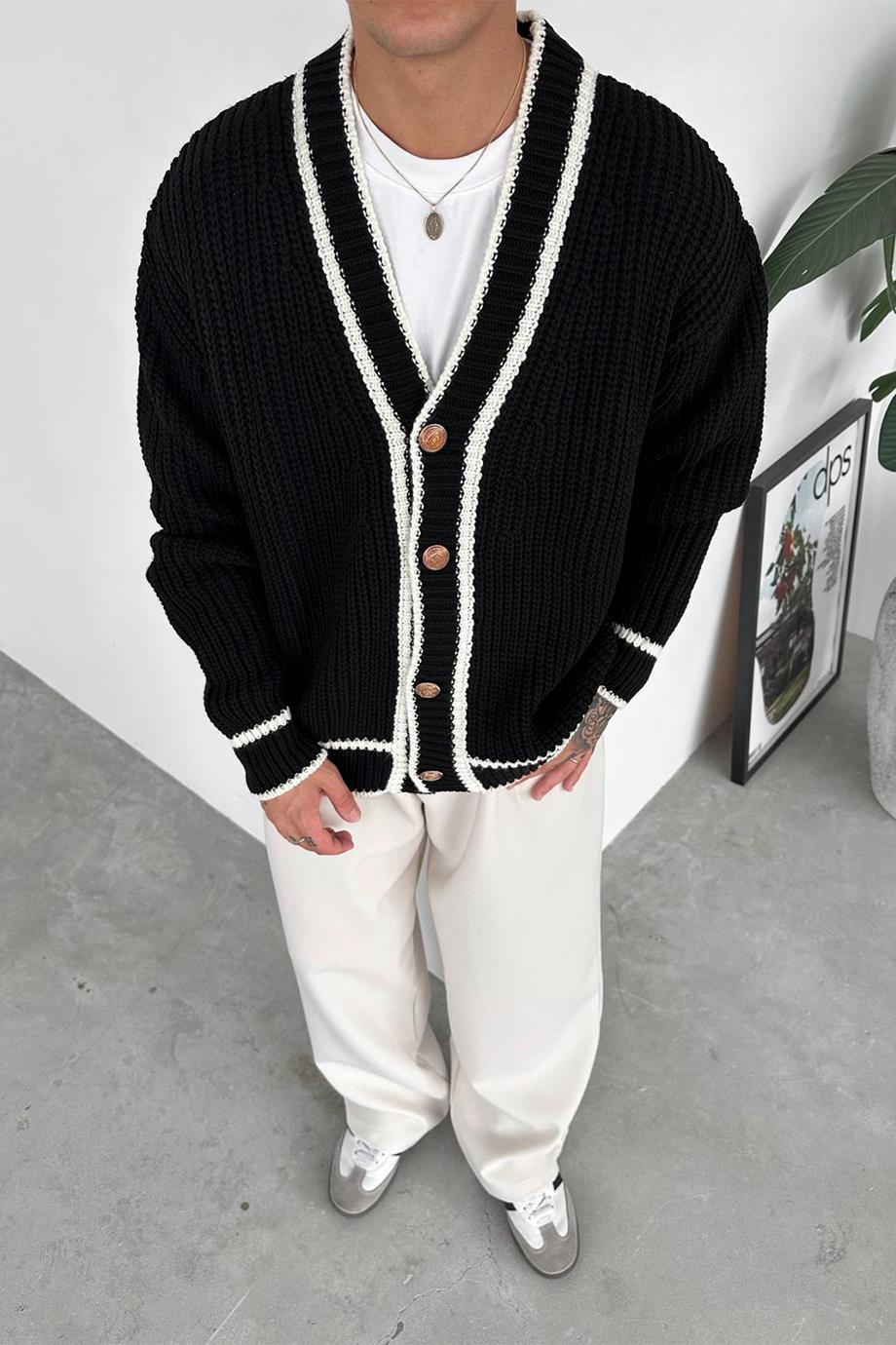 Siyah Premium Tasarım Relaxed Örme Hırka (HF0068-GO-K)
