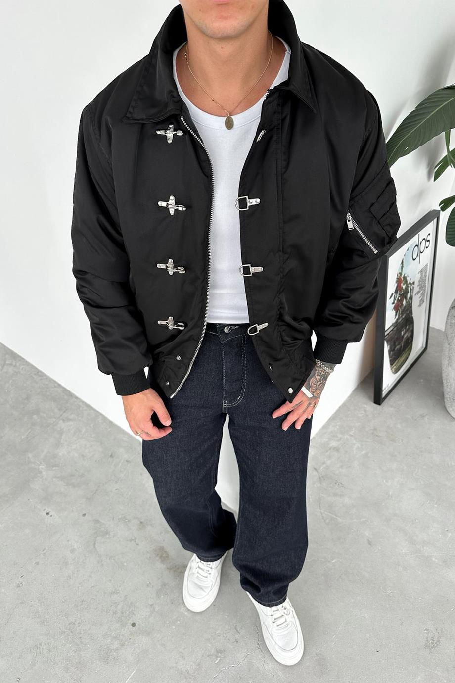 Siyah Retro Tasarım Bomber Ceket