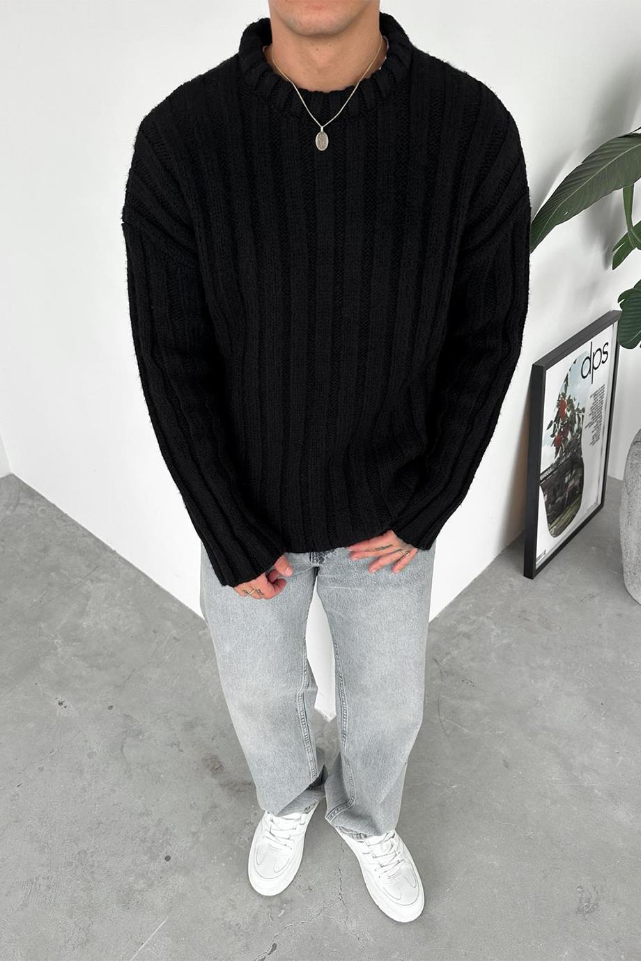 Siyah Soft Premium Örme Relaxed Triko Kazak (HF0067-GO-K)