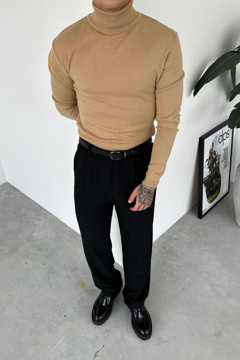 Taba Relaxed Triko Boğazlı Kazak Siyah Relaxed Triko Boğazlı Kazak