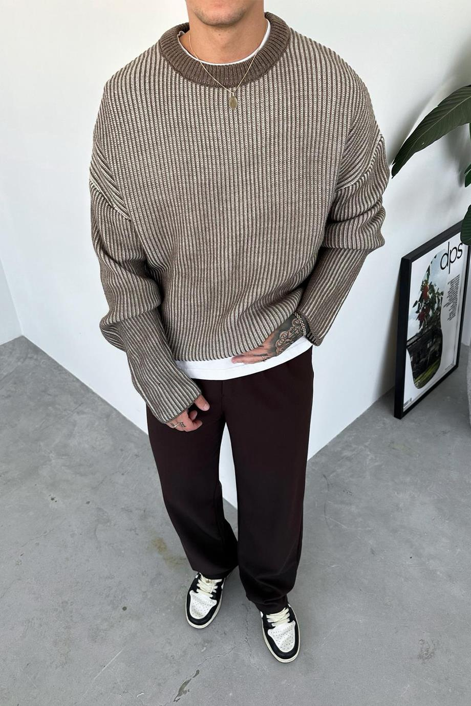 Vizon Soft Yıkamalı Relaxed Triko Kazak (HF0065-GO-K)