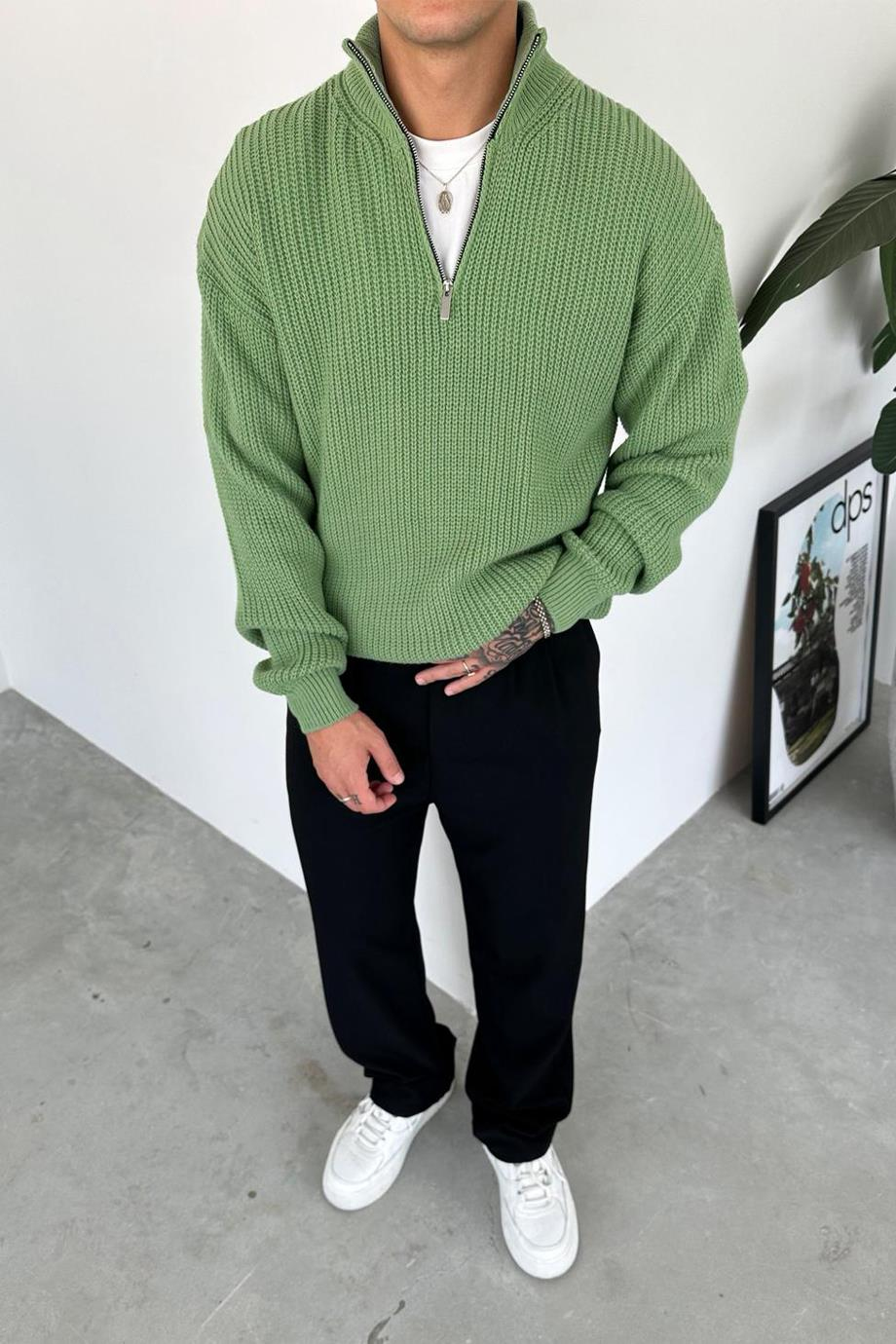 Yeşil Yarım Fermuarlı Boğazlı Triko Kazak (HF0042-MH-K)